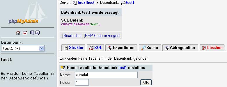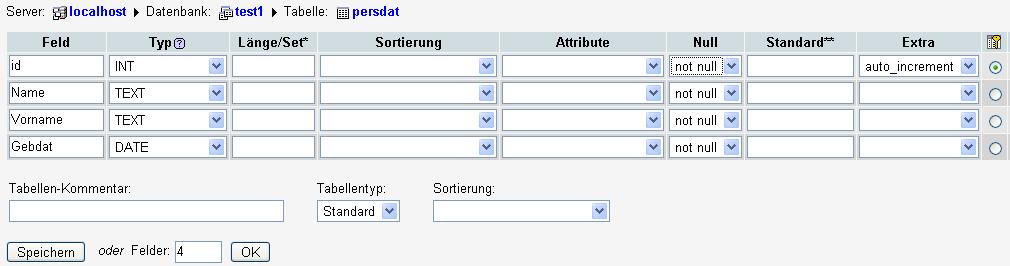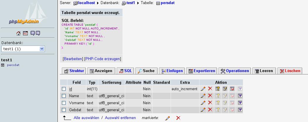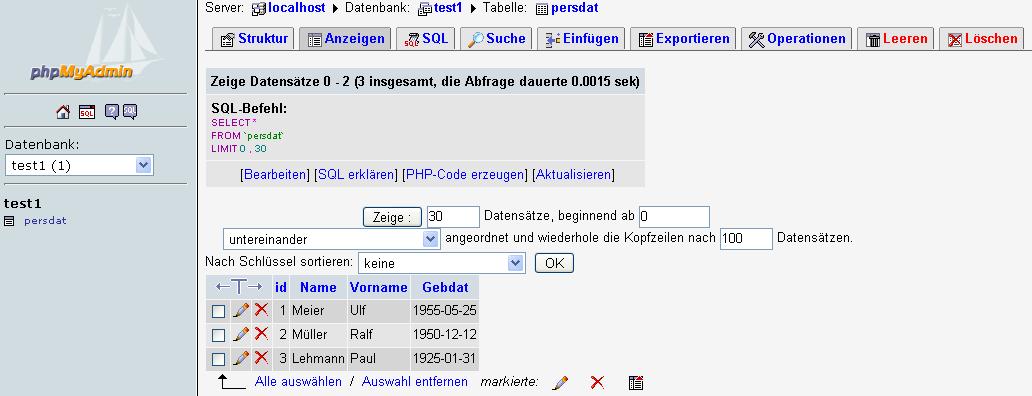 Mittels PHP-Datei sollen alle Datensätze der Tabelle test1.persdat angezeigt werden.