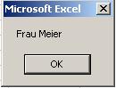 Meldungsfenster![]() | MsgBox("Text" & Variable) | MsgBox("Frau " & name) |